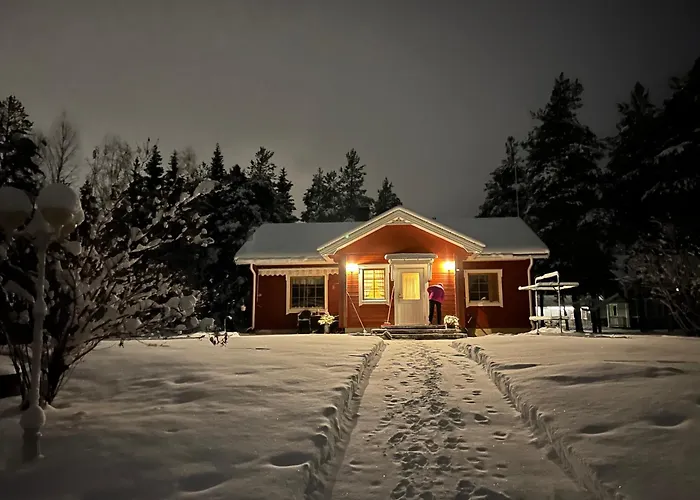 この浴室1室の別荘はロヴァニエミ空港から5㎞圏内で、木こりのろうそく橋などの文化的名所から車で10分くらいです。 ラッピア ハウスはこの別荘から3.7キロメートル離れた所で、アルクティクムから2.5キロメートルの距離にあります。